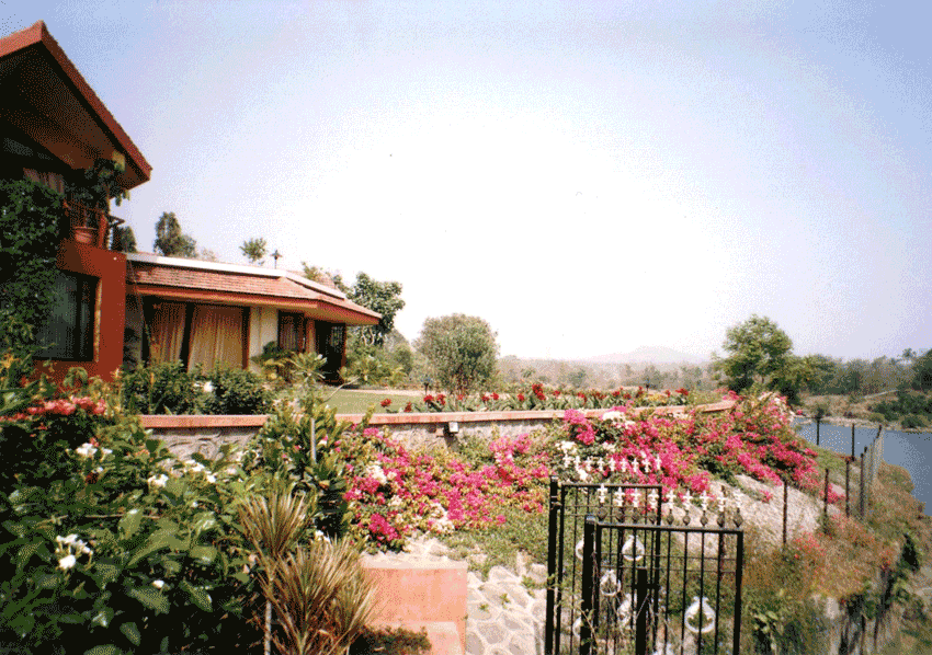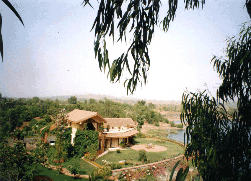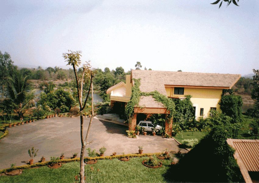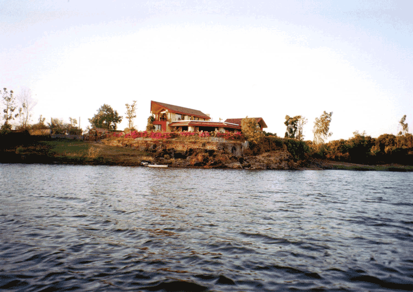 Located in the countryside eastwards of Mumbai the house stands next to a prominent river front. The semioctagonal living and all other interal spaces orient towards the riverscape. The leaping cantilever of the sloping roof is a prominent architectural feature.